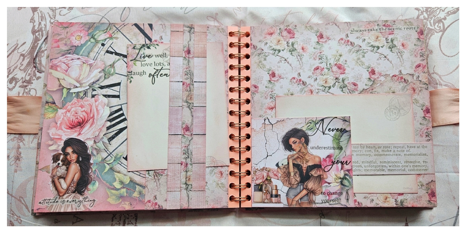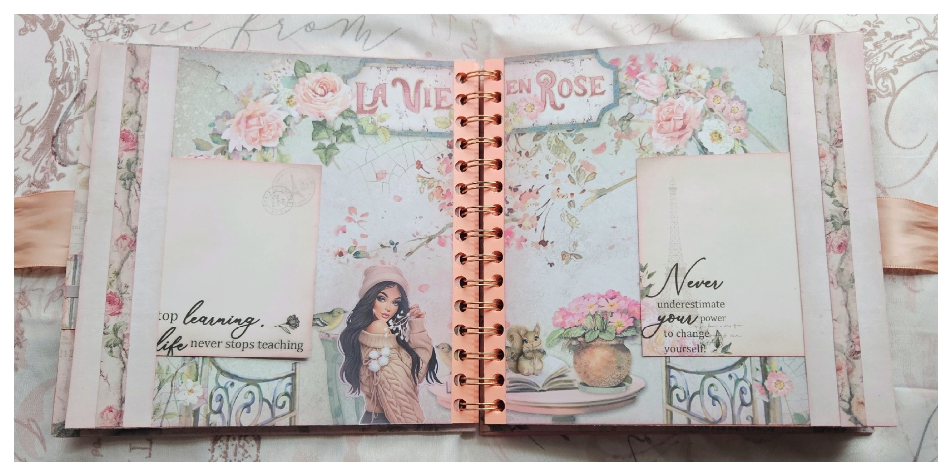 The pages have inspirational words though out the journal, and all the pages are beautifully decorated differently but sticks to the same theme though out the journal.