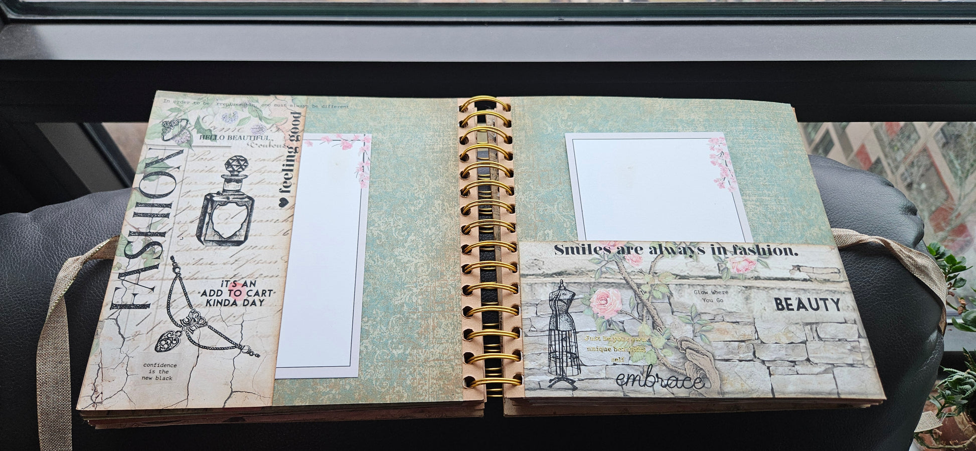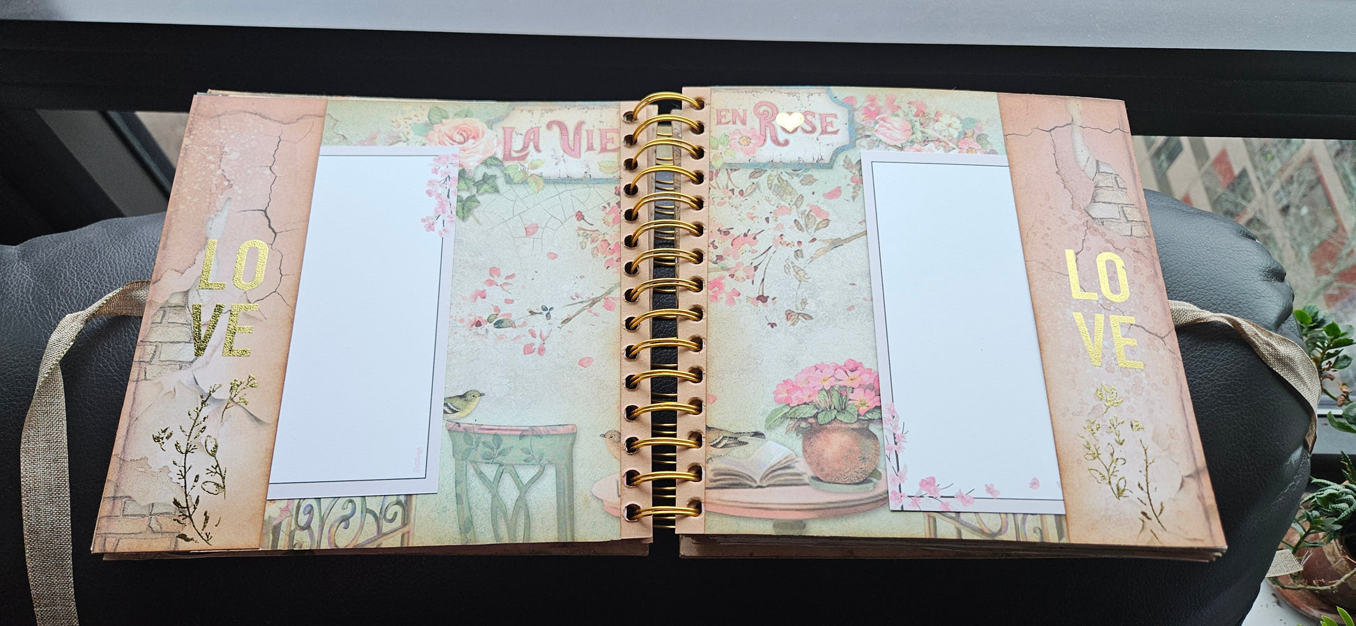 Handcrafted Cream Vintage Color, Pink Rose Theme Junk Journal